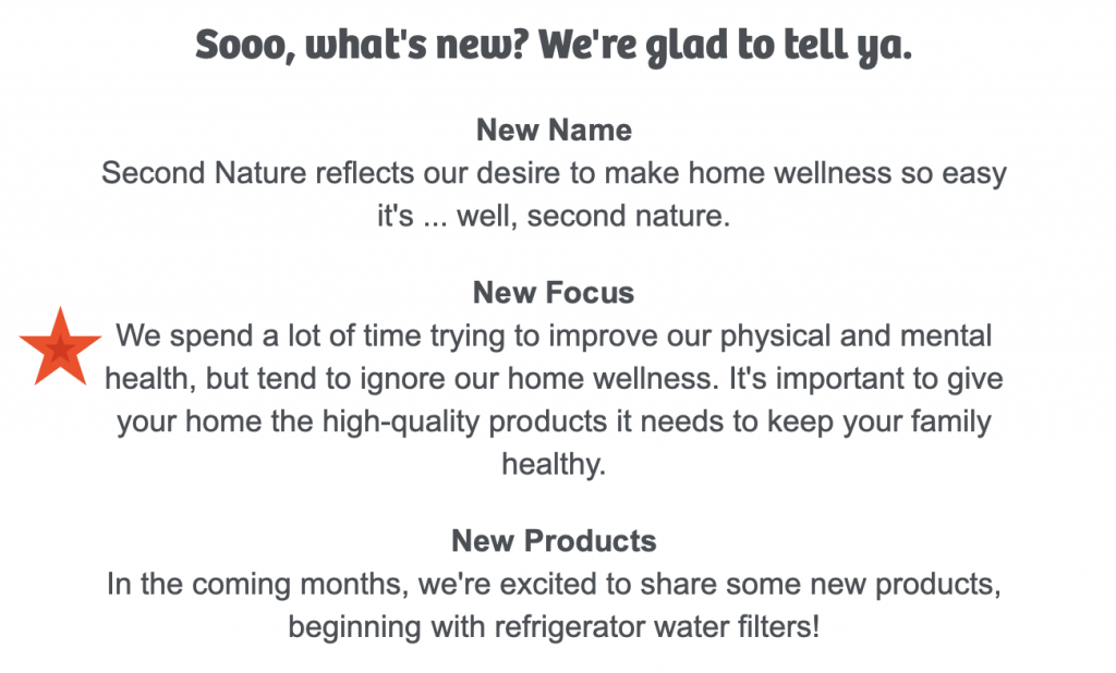 But the shift is occurring. I’m starting to see it everywhere. After my session with Alba,  I received an email from the filter company I use called Filter Easy. I have had custom-made HVAC filters made for my home for years, and they announced in the fall of 2019 that they were changing their name to Second Nature. And I had to laugh out loud as I read their new copy for their ad:
