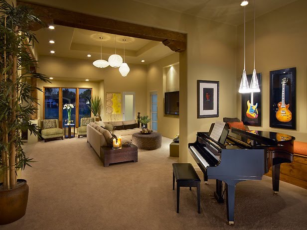 If your home got left out of the focal point lottery, choose your focus and create one. Add a TV with a large furniture console underneath it. Focus your furnishings around a beautiful art piece, or purchase a piece of furniture that commands attention (like an armoire, a console, or a piano) and anchor your furniture around it.