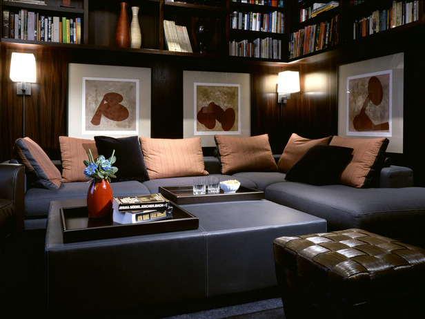 Use bright or bold colour hues to create a focal point. You can also use bold patterns, a bold colored sofa, or use a beautiful area rug to draw the eye effortlessly around the room. The room shown below, used bold color, attractive art, texture, and as a design surprise added a book nook above the seating arrangement. Instead of creating the focal point in front of the room, Shane kept the focus on the main furniture wall. Brilliant!