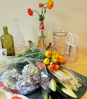 Florals are something I cherish. After my husband and I got married he became good friends with a local florist and I was lucky enough to receive fresh flowers on a weekly basis. I prized their beauty and relished in having a kitchen island adorned with fresh flowers. Once we moved to Las Vegas my days of receiving fresh flowers on a weekly basis stopped and I was forced to live with out them. Still wanting Martha results without all the work I learned how to wing it, and found that florals were not nearly as intimidating as I had thought. And despite not knowing most of their names, my color and design background served me well and allowed me to make fabulous florals.