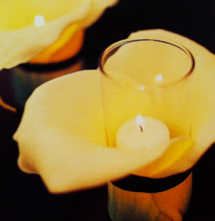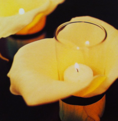 Take two calla lilies and wrap around a votive, secure with ribbon.