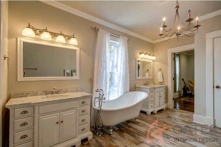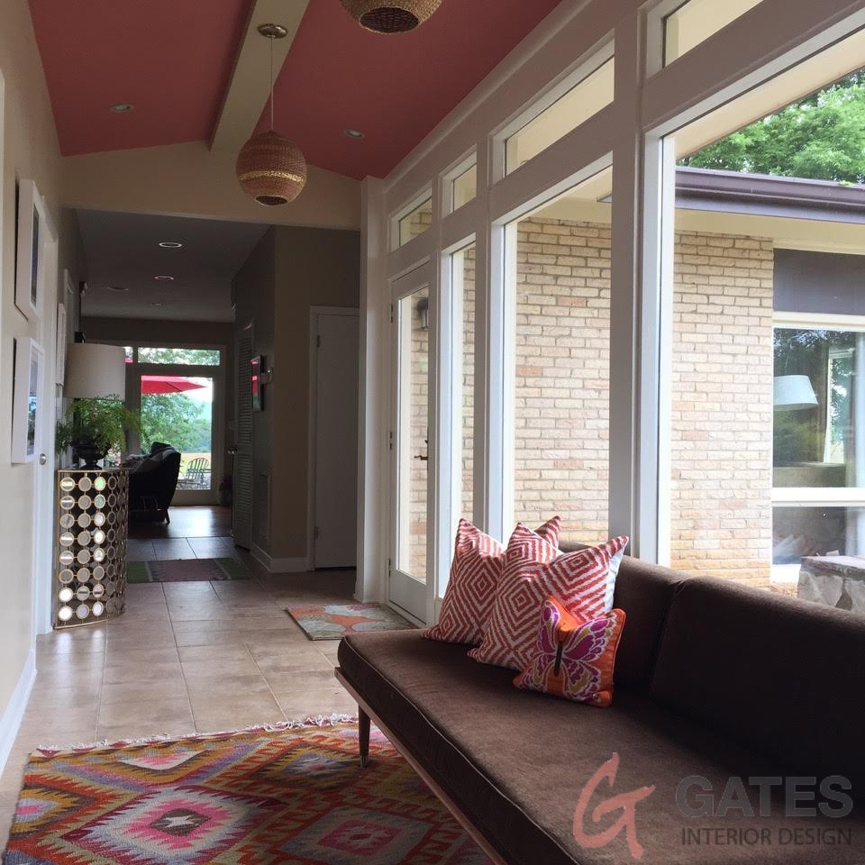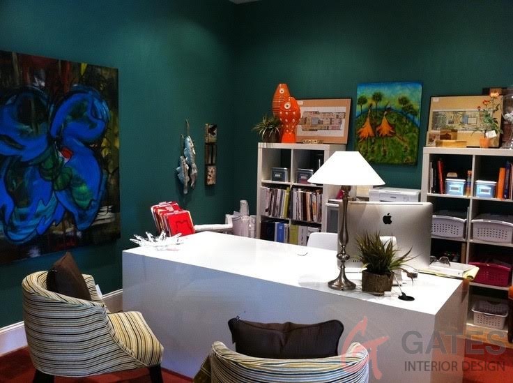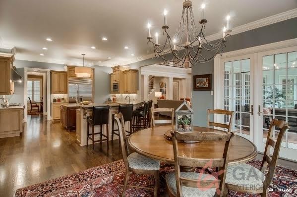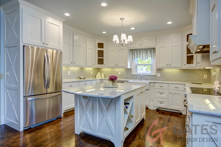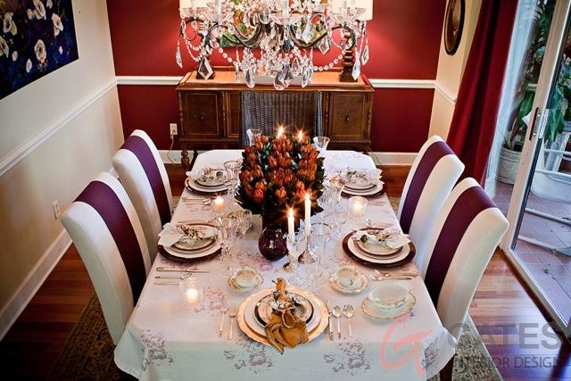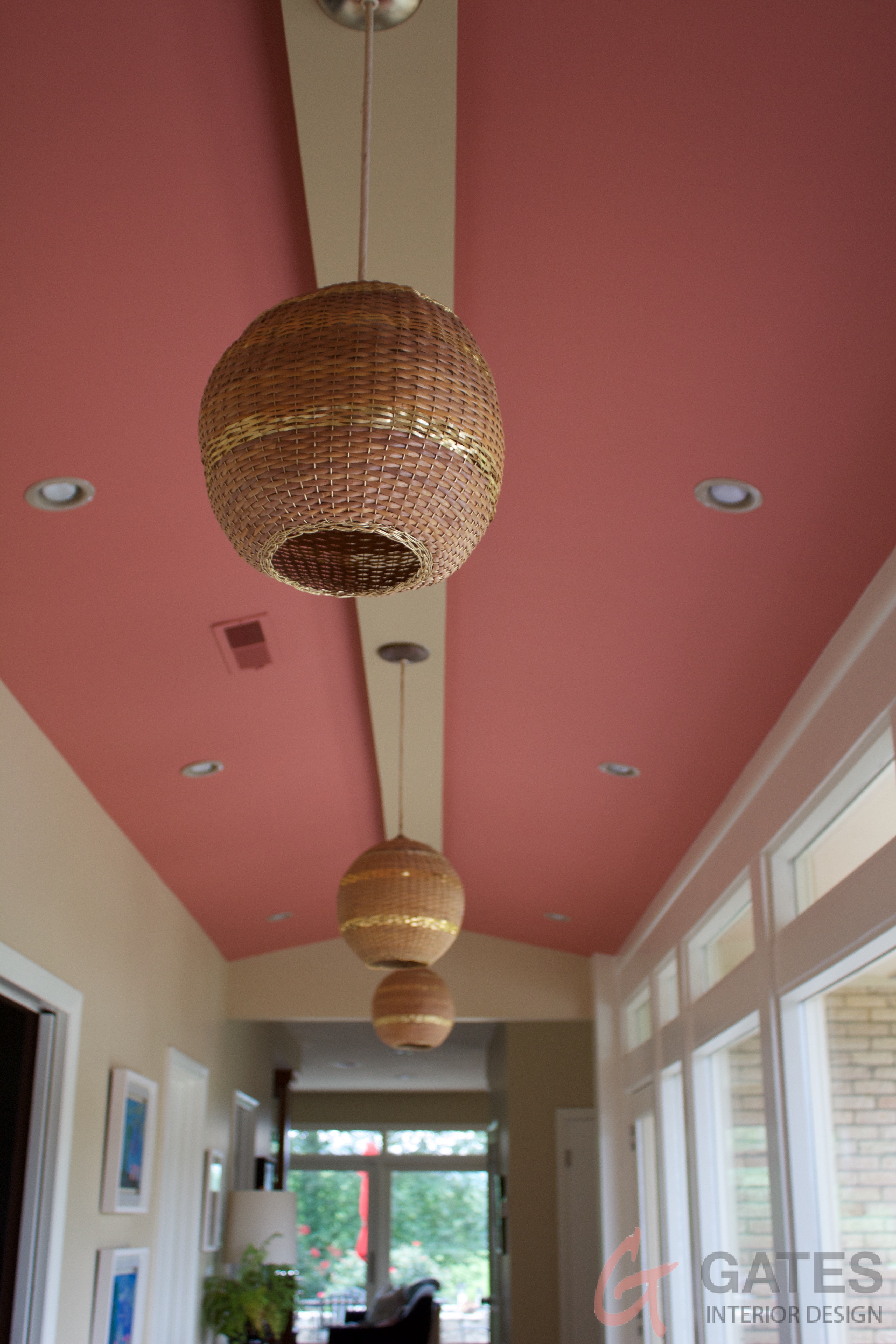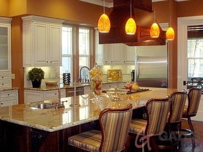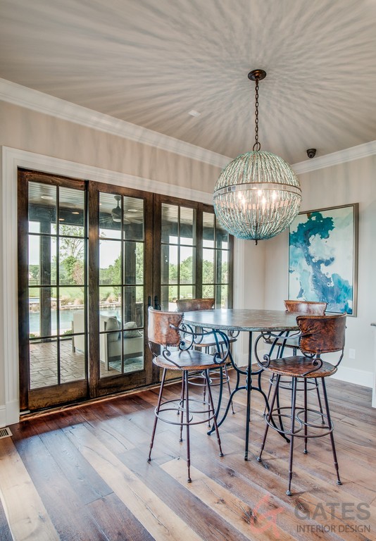 - Eat in kitchen with custom turquoise chandelier by Gates Interior Design